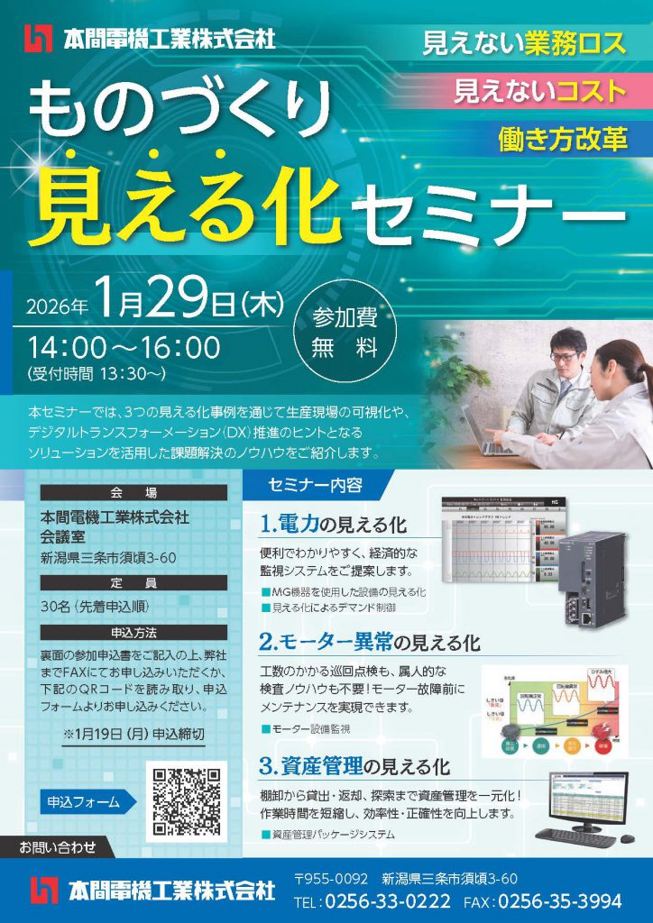 | 会場 | 本間電機工業株式会社 会議室 〒955-0092 新潟県三条市須頃3-60 TEL:0256-33-0222 |